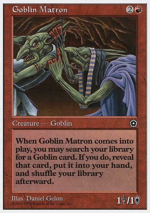 When Goblin Matron enters the battlefield, you may search your library for a Goblin card, reveal that card, put it into your hand, then shuffle.